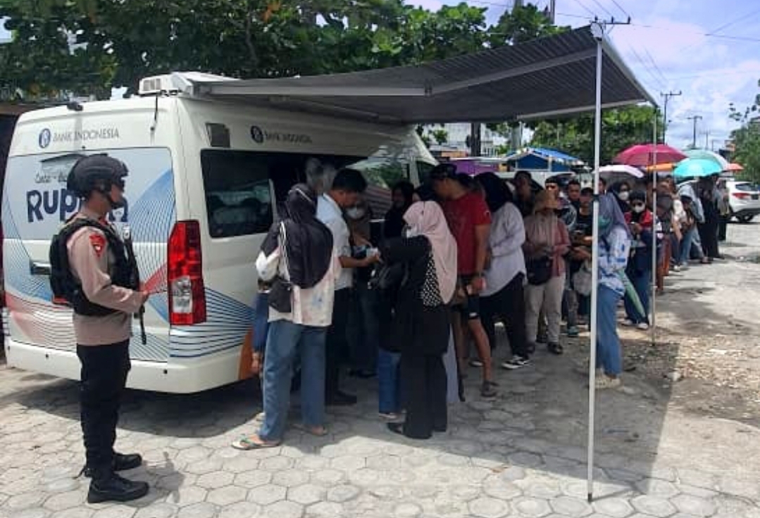 Antusiasme masyarakat saat melakukan penukaran uang di mobil keliling BI.
